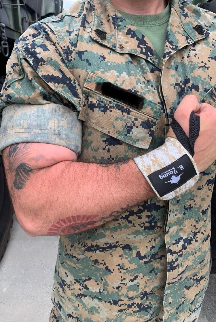 Brian was holding inventory of thousands of fitness wrist wraps in his storage lockers in his barracks room. his superiors thought he was crazy. While active duty Brian was able to work alongside Headquarters Marine Corps and gained permission to use the Desert and woodland camo designs on his wrist wraps. Brian Used this opportunity to share his fitness brand among the Marine Corps fitness community. Slowly gaining traction.